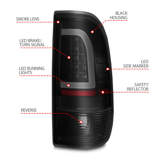 ANZO 1997-2003 Ford F-150 LED Tail Lights w/ Light Bar - 311378