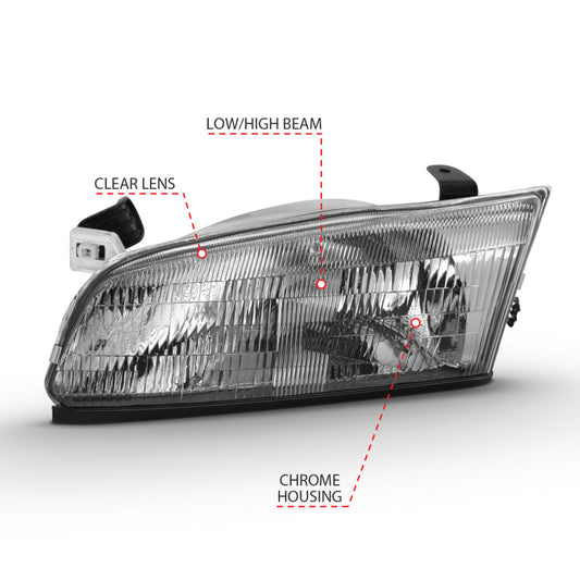 ANZO 1997-1999 Toyota Camry Crystal Headlight Chrome Amber(OE) - 121555