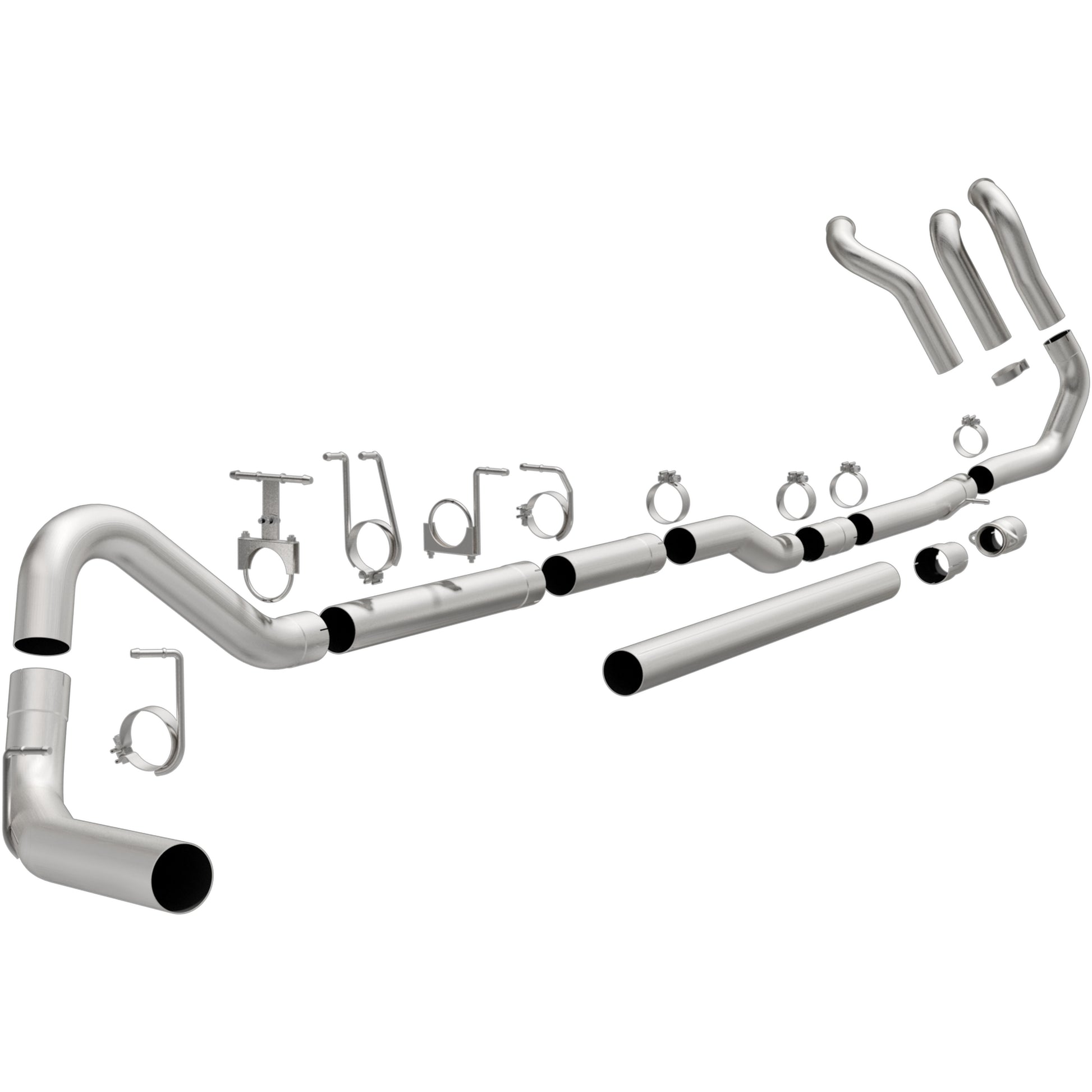 The MagnaFlow Custom Builder Pipe Series Turbo-Back Performance Exhaust 17878 utilizes a weight-optimized, emissions-legal design engineered to enhance your diesel truck with our signature resonant sound and dyno-proven performance. This turbo-back 4in. diameter Custom Builder Pipe kit is made of durable, corrosion resistant stainless steel and produced using CNC precision robotic manufacturing techniques, all backed by MagnaFlow's limited lifetime warranty. Exhaust kit 17878's mandrel bent pipes have been tuned to produce Aggressive interior and Very Aggressive exterior sound levels. The system terminates in a Single Passenger Side Rear exit. Professional installation is recommended due to the possible cutting, welding and fabrication required.