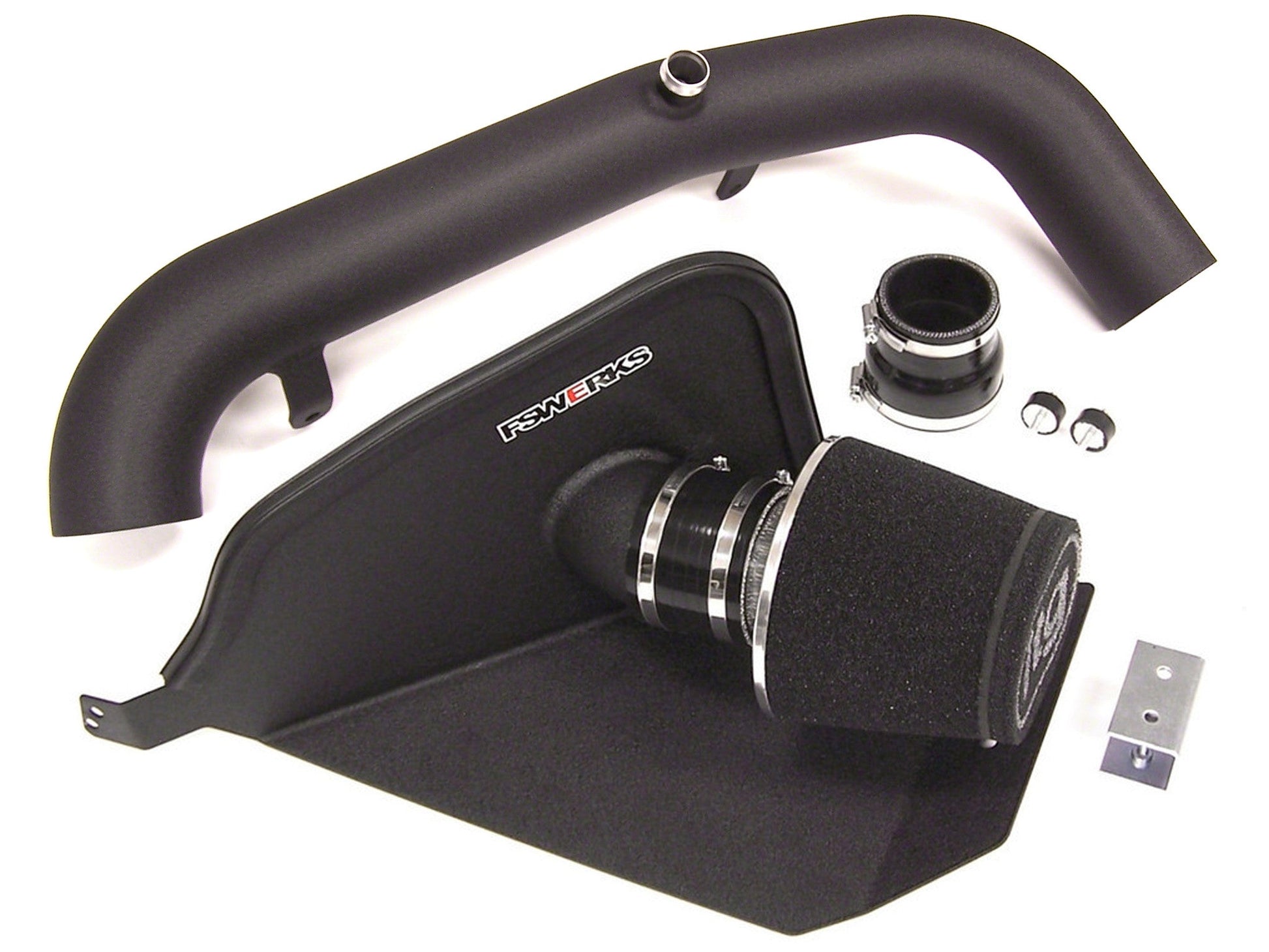 The FSWERKS Cool-Flo Plus air intake system is our top of the line kit for the Focus ST. It eliminates the factory airbox to allow for maximum airflow from all angles, yet still provides a barrier from engine heat. We achieve this by utilizing our powdercoated aluminum heat shield, which has a rubber hood seal that meets up with the hood when it closes. To further maximize airflow our heat shield incorporates a larger 3" inlet where our high performance air filter connects compared to the factory 2.75" inlet. The Cool-Flo Plus then takes it a step further adding our powdercoated 3" mandrel bent aluminum turbo inlet tube to the system, making this a true 3" air intake system from the air filter to the turbo. Features laser cut brackets and tig welded construction.
