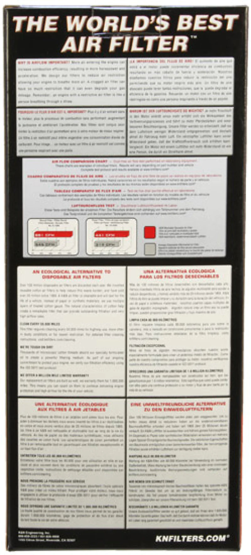 For over 50 years, K&N® has been an industry-leader in automotive filtration and technology—offering products to increase performance, protection, and longevity in thousands of vehicle applications for consumers worldwide. HISTORY In the early 1960s, two motorcycle racers, Ken Johnson and Norm McDonald (K&N), developed a ground-breaking new idea for an air filter—one that could perform under the demands of dusty, dirty off-road environments. After experimenting with numerous types of filter media, they discovered that an oiled cotton design allowed the filter to not only capture contaminants very efficiently, but also allowed it to be washed and reused, and the original K&N® High-Flow Air Filter™ was born. Five decades later, K&N® is still innovating industry-leading filtration technology, and offers outstanding protection for everything from top-fuel dragsters to commuter vehicles across the globe.