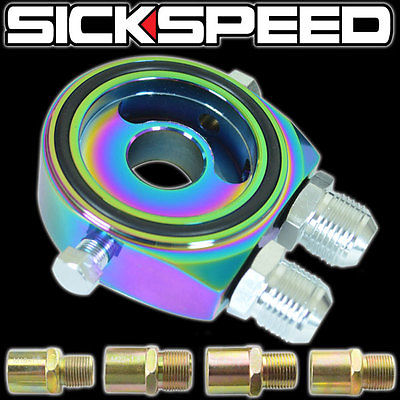 OIL FILTER SENDER SANDWICH PLATE COOLER ADAPTER KIT FEED LINE NEO CHROME