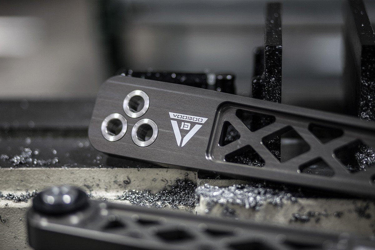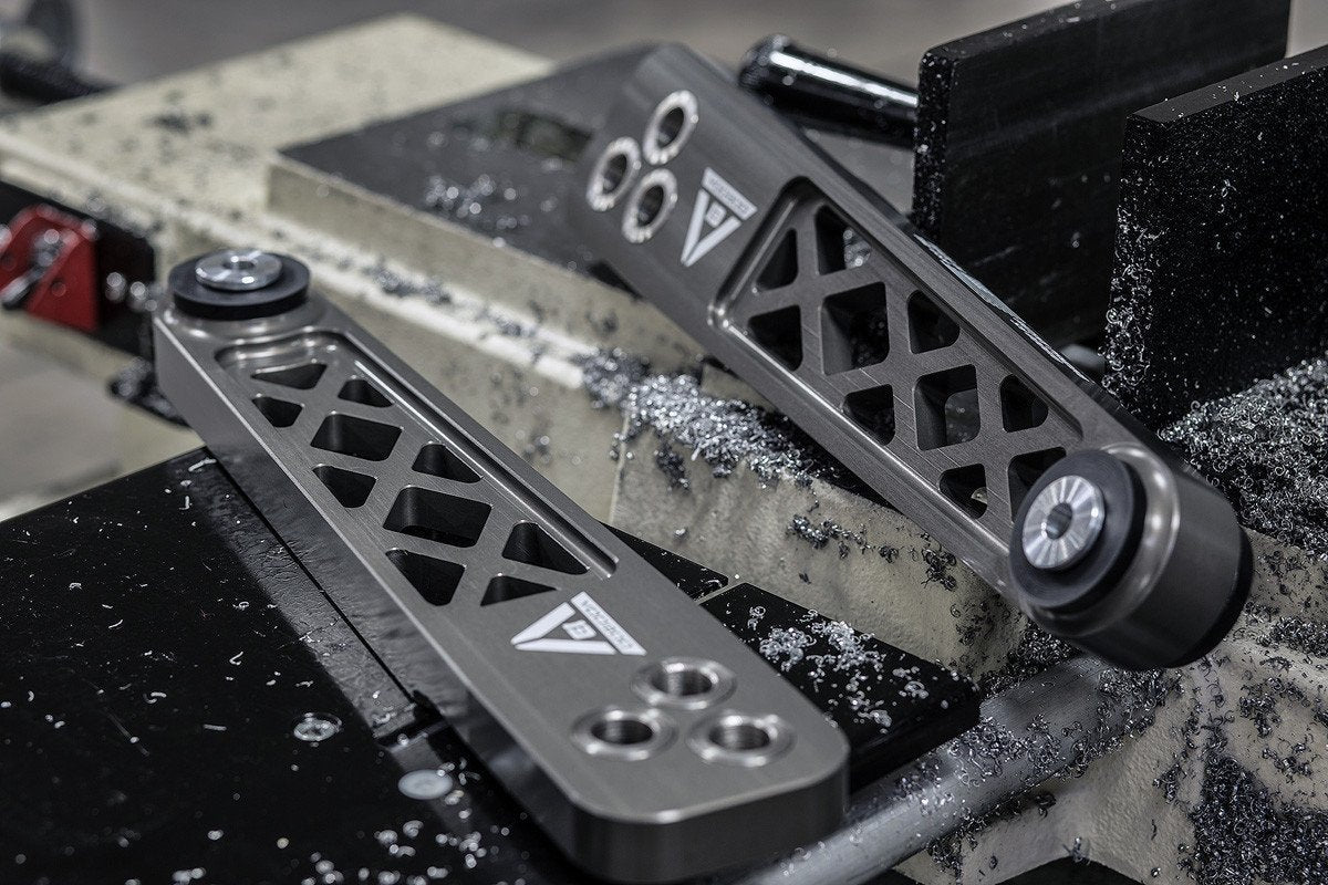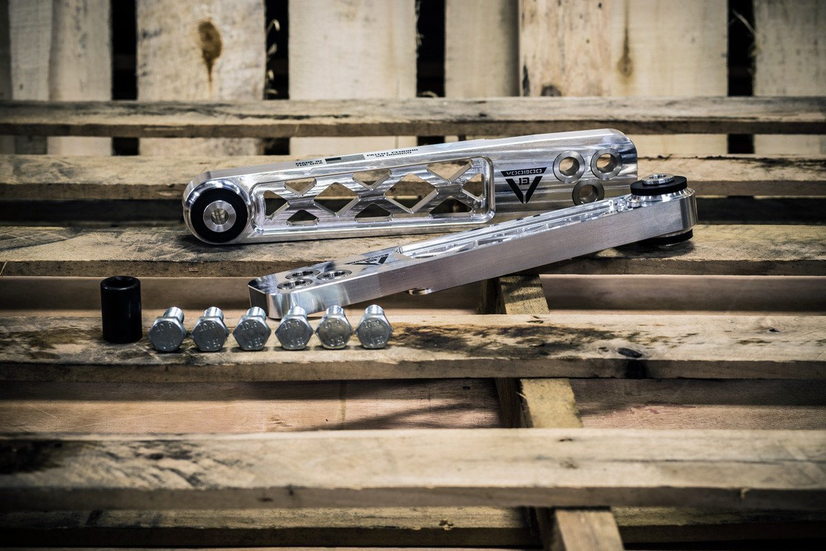 Voodoo 13 2002-2006 Acura RSX Rear Lower Control Arms. Precision CNC machined from high strength 6061 aluminum then coated in MIL-A-8625 Type III Hard Anodize ensure these control arms are lightweight and corrosion resistant.